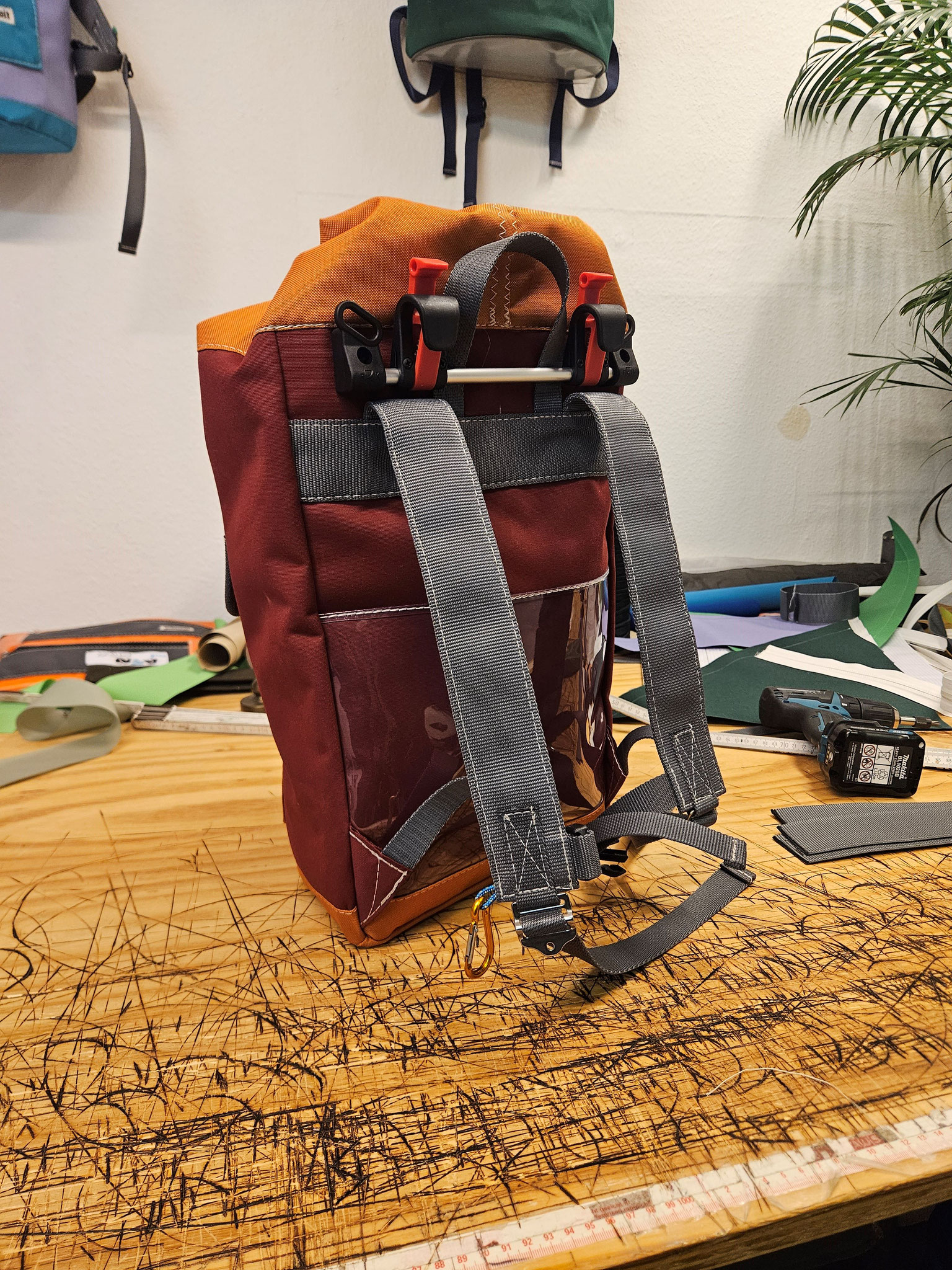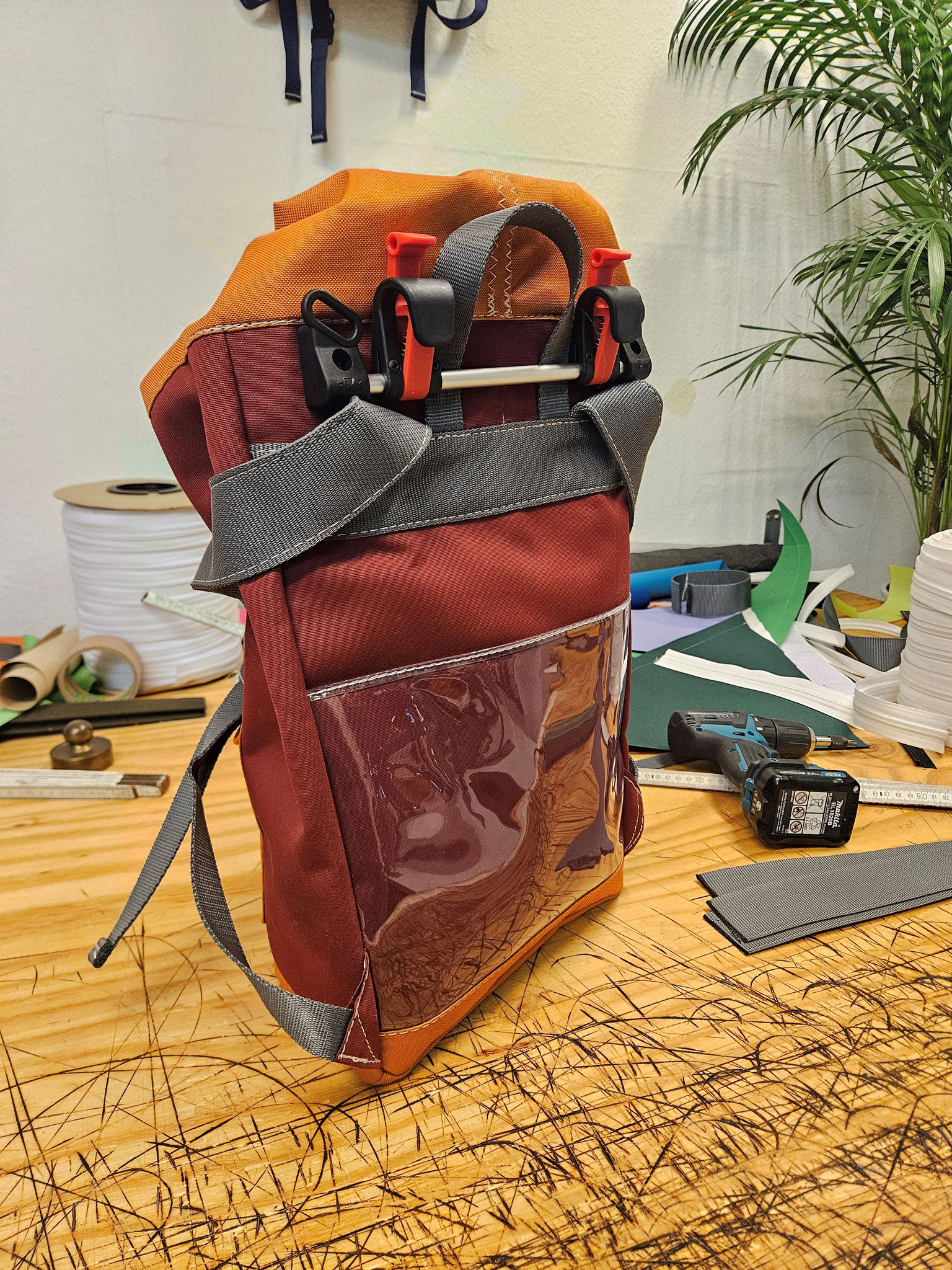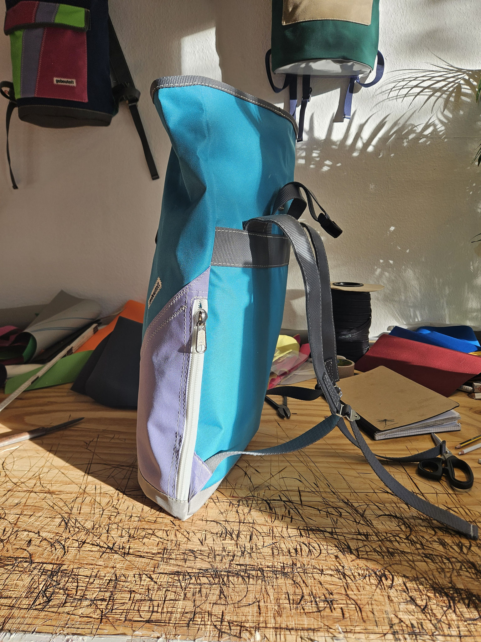 Ein leichter Rucksack. Robustes Material. Wasserabweisend. Einzelstück.